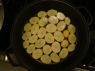 3 תפוחי אדמה (תלוי בקוטר הסיר) מקולפים ופרוסים לפרוסות של חצי סנטימטר