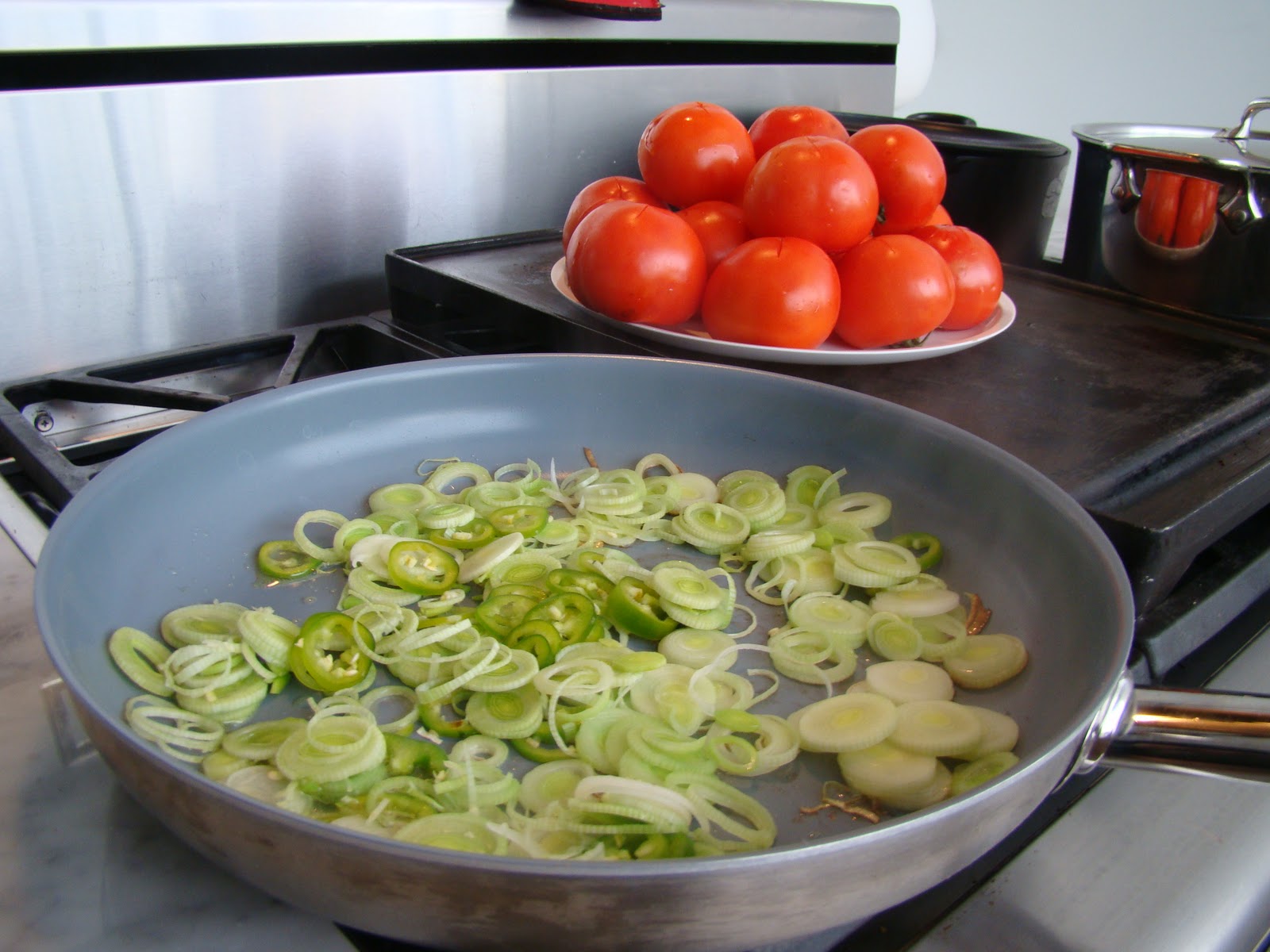 10 עגבניות מקולפות וחתוכות לקוביות (מרתיחים מים בסיר גדול,