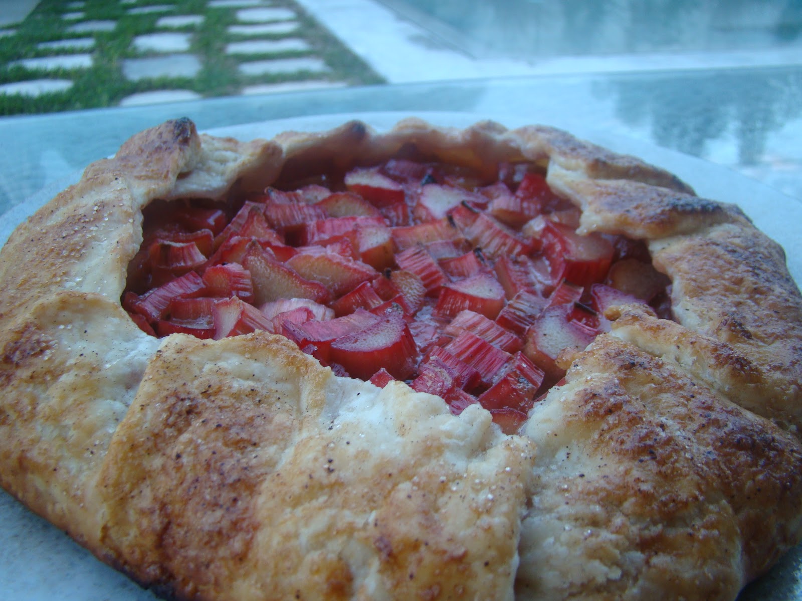 8. למרוח את הבצק החשוף בביצה ולפזר סוכר מעל. לאפות כחצי שעה או עד שהבצק משחים והרובארב מבעבע.
