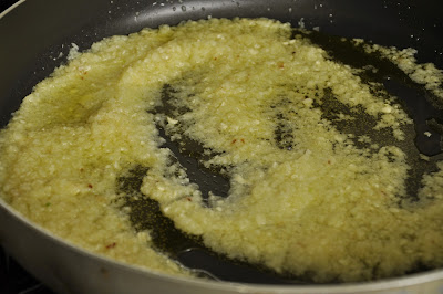 3. במחבת רחבה, מחממים את השמן מעל אש בינונית ומוסיפים את מחית הבצל. מערבבים מדי פעם עד שמזהיב.