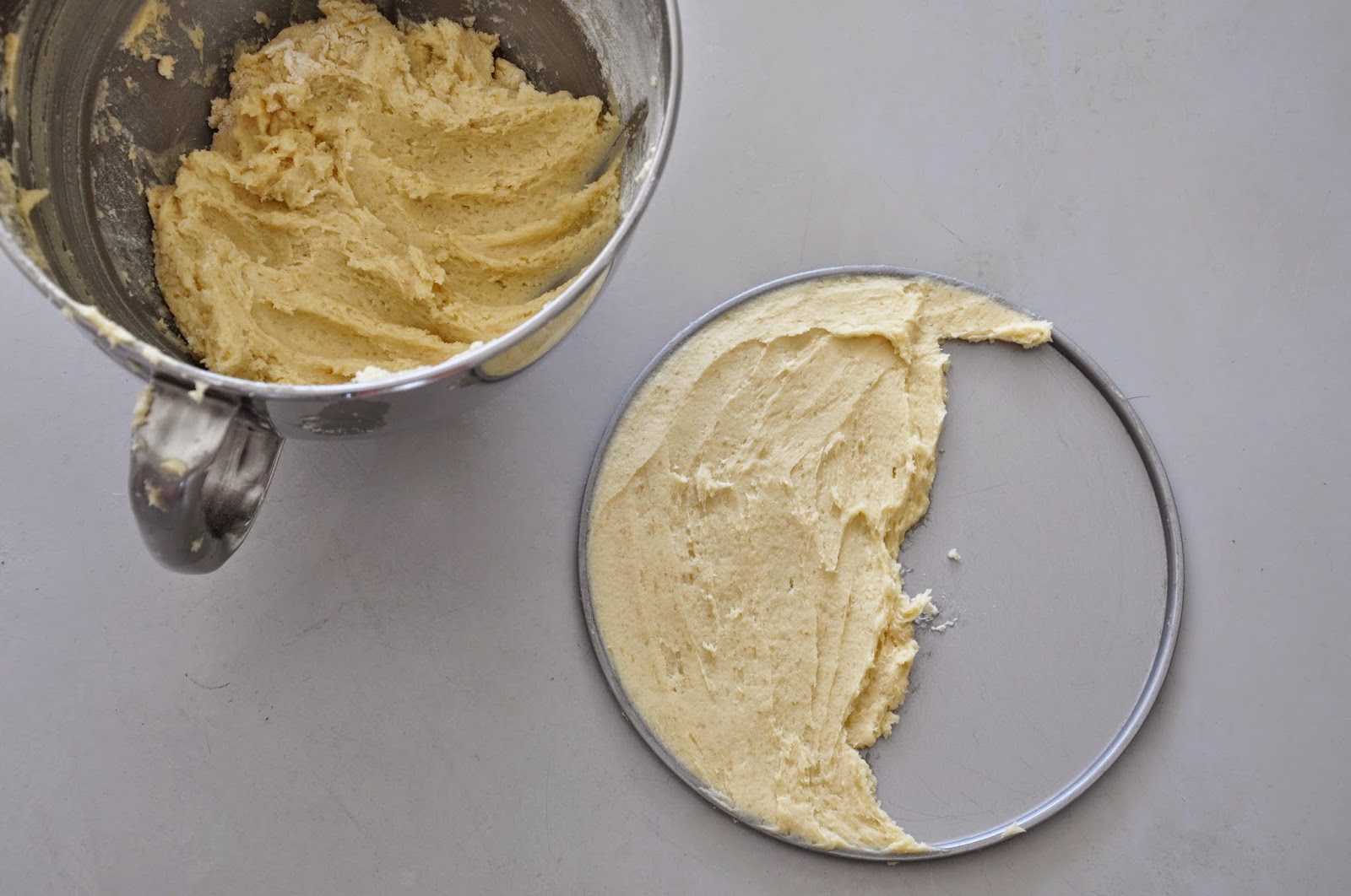 1. מכניסים את החמאה והסוכר לקערת המערבל ובעזרת וו הגיטרה מרככים ומערבבים כ5 דקות, כשמידי פעם מורידים מהדפנות את החמאה. מוסיפים את הביצים אחת אחת, מערבבים היטב בין ביצה לביצה ומורידים מהדפנות. בשלב זה הבלילה תיראה שבורה לחלוטין, זה בסדר. מוסיפים את הקמח ומערבבים טוב.