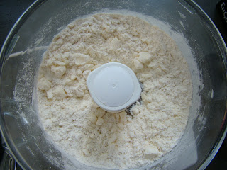 2. להוסיף את קוביות החמאה הקרה (לפורר בידיים או להפעיל מעבד מזון בפולסים) עד שנשארים גושי חמאה בגדלים שונים. הגודל הגדול ביותר בגודל אפונה.